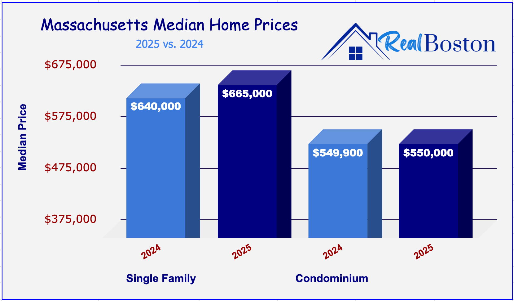 The median price of a single-family home in Massachusetts increased 4 percent in 2025 to $665,000 from $640,000 in 2024, according to data compiled by the Massachusetts Association of Realtors (MAR).